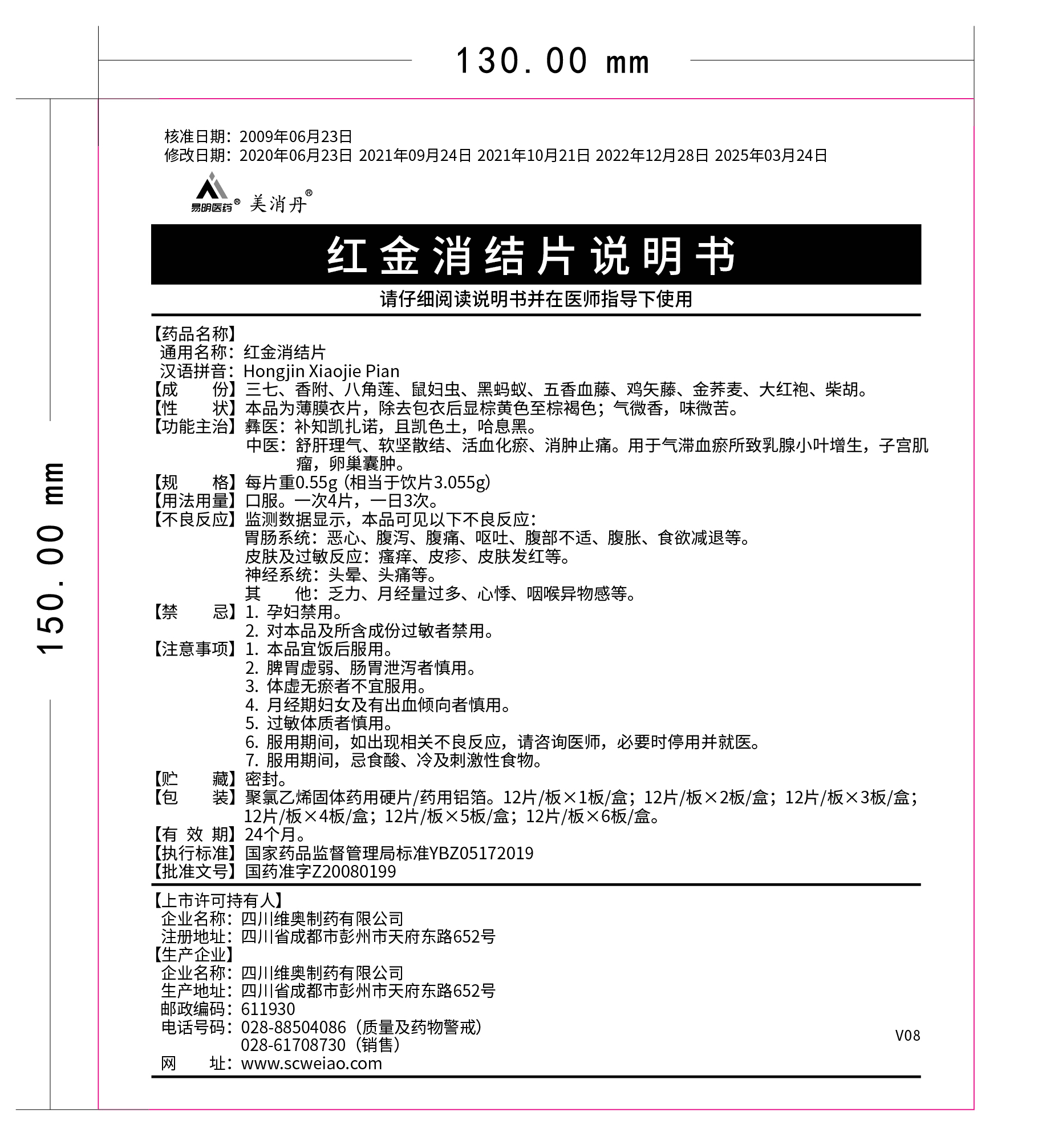 192025-09我司對(duì)紅金消結(jié)片說明書(批準(zhǔn)文號(hào):國藥準(zhǔn)字Z20080199)進(jìn)行修訂
